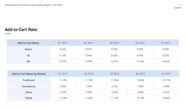 Com base em seus dados, eles descobriram que as taxas de adição ao carrinho eram em média de 9,03% em todo o mundo: